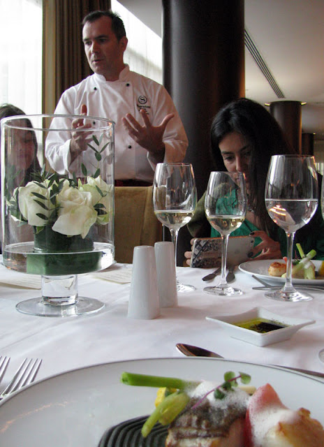 | Entrada: Lavagante em sucos de citrinos e basílico - Parfait de carangueijo real Ar de Champanhe e rebentos de sakura. Sensacional! |