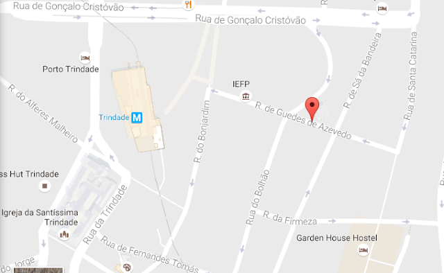 Na Rua de Sá da Bandeira, esquina com a Rua Guedes de Azevedo.